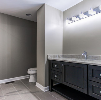 The first floor owner's suite received a makeover as well. Fresh paint, carpeting and a feature wall was added to the bedroom. The bathroom has an expanded shower, new tub, vanity and floor.